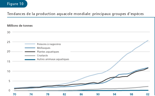 zones marines représente donc le total de la production aquacole.