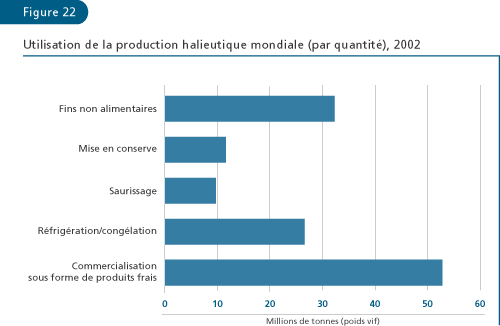 Afin d’encourager l’aquaculture, les gouvernements ont également mis en œuvre des politiques de promotion du marché, de mise au point de nouveaux produits à valeur ajoutée et de réglementation de la sécurité sanitaire de la production aquacole. Outre les règlements régissant les drogues et l’alimentation animale utilisées en aquaculture, des dispositions particulières ont été édictées concernant la transformation et l’emballage des produits d’aquaculture, afin de prévenir les dangers pour la santé et de protéger les consommateurs.