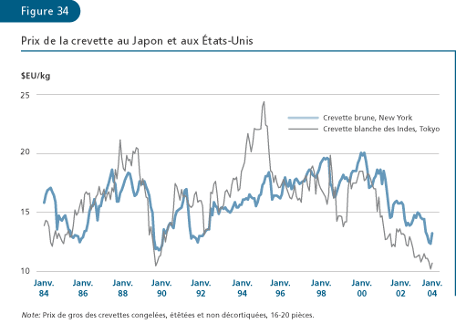 Le Pacifique Nord-Ouest est la zone de pêche la plus productive de la planète, avec un volume nominal de captures (Chine comprise) oscillant entre 20 et 24 millions de tonnes depuis la fin des années 80 (figure 18). Les amples fluctuations des prises réalisées dans la région ont pour cause principale les pêches intéressant les stocks abondants de pilchards du Japon (ou sardines japonaises) et de lieu de l’Alaska. Les stocks de ces deux espèces ont décliné depuis la fin des années 80, sous l’effet conjugué de la surexploitation et de facteurs environnementaux affectant la productivité des stocks. Bien que l’on ait constaté une augmentation des captures d’autres espèces, y compris de l’anchois japonais, ce facteur n’a pas suffi à compenser le recul affectant la sardine et le lieu, ni à contrebalancer la baisse régulière des volumes débarqués dans cette zone, soit environ 3 pour cent par an depuis 1998.