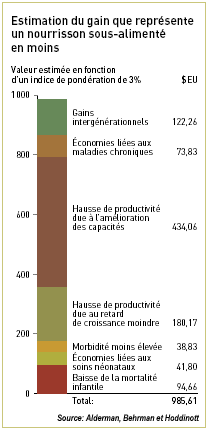 Ces chiffres sont cependant loin de rendre compte de tout le fardeau économique de la faim. Ainsi: