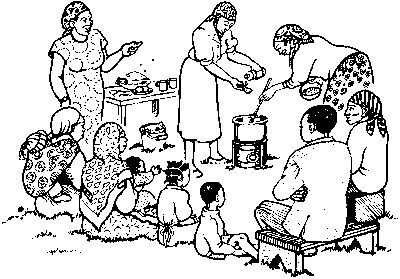 Démonstrations (voir la figure 1). Elles sont utiles pour montrer comment préparer un repas ou une collation, garder les denrées dans de bonnes conditions d'hygiène, nourrir un jeune enfant ou une personne malade.