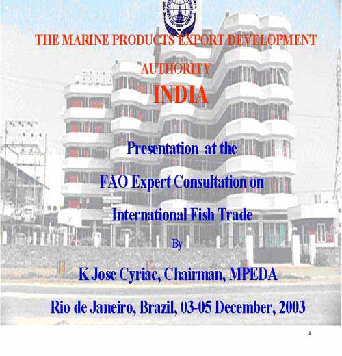 Presentation on behalf of the Marine Products Export Development Authority (MPEDA) - Advantages and constraints of the fish industry in developing countries, the case of India
