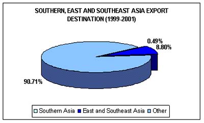 Already at present South East Asia is a strong exporter to countries from the same sub-region with almost ten percent of total export earnings. Intra-regional trade is lower in other regional grouping among developing countries, and lowest among Central American and Caribbean countries.