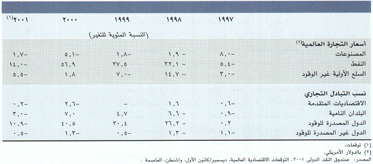 يقوض الانخفاض في نسب التبادل التجاري التوقعات الاقتصادية لكثير من البلدان النامية، على الرغم من أن انخفاض أسعار النفط في 2001 قد ساعد على تبديد التأثيرات السلبية لانخفاض الأسعار في البلدان المصدرة للسلع الأخرى غير الوقود.