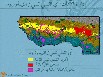 تظهر الخريطة 4 كيف ترتبط النظم التي حددت بشتى جوانب مركب التسي تسي - التريبانوزوما. ففي الأراضي التي تقع شمال منطقة الذبابة، كل الأبقار من فصيلة زيبو. وهذه الحيوانات تهاجر موسميا إلى الحزام الشمالي لمنطقة انتشار التسي تسي (الحزام الأصفر). ويمثل الحزام الشمالي مجموعة من الفرص التي تهم بوجه خاص جهود استئصال التسي تسي.