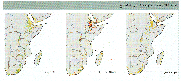 يعيش أكثر من 95 في المائة من سكان المناطق الجبلية في أفريقيا جنوب الصحراء الكبرى، والبالغ عددهم 88 مليون نسمة، في السلاسل الجبلية في الوادي المتصدع الأفريقي على ارتفاعات نادرا ما تتجاوز 2500 متر. وعلى الرغم من أن هذه السلاسل الجبلية تضم بعضا من أكثر المناطق الجبلية المأهولة بالسكان في العالم، فإن أقل من 15 في المائة من السكان يعيشون في المدن وتعتبر درجة تعرضهم لنقص الأغذية عالية إلى حد كبير.