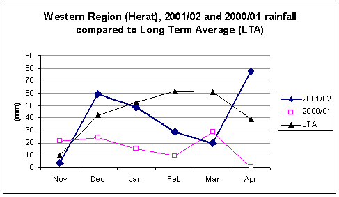 Figure 1: Rainfall in Two Regions of Afghanistan, 2001/02 Crop Season