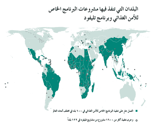 - أعدّ برنامج مكافحة الجوع في عام 2002 لترجمة هذه الاستراتيجيات على أرض الواقع وتوفير إطار للحد من الجوع على مستوى العالم ككل من خلال التنمية الزراعية والريفية وزيادة فرص الحصول على الأغذية. كذلك، تقدم المنظمة المساعدة حيثما تلزم من أجل صياغة هذا النوع من البرامج على مستوى القارة كما حصل بالنسبة إلى البرنامج الشامل للتنمية الزراعية في أفريقيا في إطار الشراكة الجديدة من أجل التنمية في أفريقيا (نيباد)، أو على المستويين الإقليمي وشبه الإقليمي من أجل صياغة برامج إقليمية للأمن الغذائي بالتعاون مع أمانات المنظمات الاقتصادية الإقليمية، أو على المستوى القطري من خلال صياغة خطط الاستثمار القطرية المتوسطة الأجل التي تمتد لفترة خمس سنوات، إلى جانب المواصفات ذات الصلة في المشاريع القابلة للتمويل.