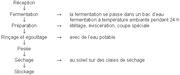 Ces premiers essais et analyses de laboratoire ont montré que la qualité du guedj peut être améliorée avec l'utilization des produits frais, la définition de la durée optimale de fermentation, la définition de la durée du séchage, le respect des conditions d'hygiène pendant le traitement et la conservation des produits et l'élaboration des normes de qualité pour les produits finis. La complexité de l'interaction des différents facteurs sur la qualité et l'état hygiénique du fermenté - séché montre la nécessité de poursuivre les expérimentations dans le but de définir des normes standard pour la transformation et la conservation traditionnelle du fermenté séché (guedj). La sensibilisation et la formation des artisans sur les normes de qualité, l'uniformisation et l'instauration d'un système de suivi sont les seules garanties pour la production des produits salubres et de qualité compétitive.