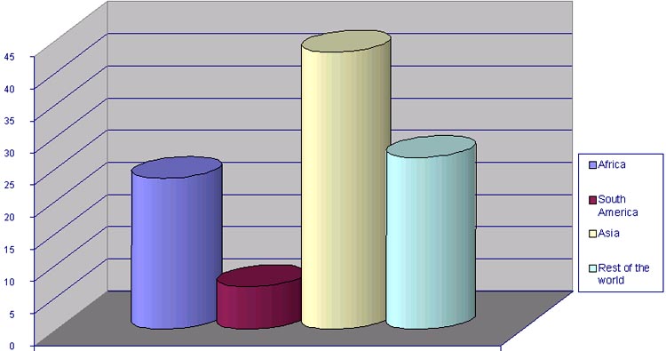 Fig 1: Production of root and tuber crops (in % of the total world production)