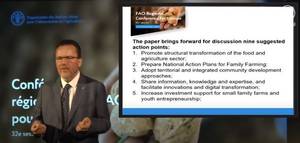 Otro tema importante vinculado con el enfoque de sistemas alimentarios que se examinará el primer día de la Conferencia será el siguiente: Soluciones para los jóvenes, el empleo y el desarrollo de las zonas rurales en relación con el Decenio de las Naciones Unidas de la Agricultura Familiar. El debate tiene la finalidad de subrayar el hecho de que los pequeños productores y los agricultores familiares son esenciales para conseguir la seguridad alimentaria a largo plazo, la reducción de la pobreza rural y la sostenibilidad social y ambiental en Europa y Asia central. En relación con este tema del programa se presentará un análisis de la situación de las pequeñas explotaciones, las granjas familiares y la juventud rural en la agricultura, que incluirá un examen de las estrategias que podrían fomentar la revitalización de las zonas rurales en la región. Por último, se explorarán las funciones de la FAO y los Estados Miembros en el desarrollo de las explotaciones familiares y los jóvenes.