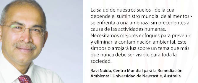 El Simposio Mundial sobre la Contaminación del Suelo se celebrará del 2 al 4 de mayo de 2018 en la sede de la FAO. La Organización de las Naciones Unidas para la Alimentación y la Agricultura, la Alianza Mundial por el Suelo (AMS), y su Grupo Técnico Intergubernamental sobre Suelos (GTIS), junto con las Secretarías los Convenios de Basilea, Rotterdam y Estocolmo, ONU Medio Ambiente y la Organización Mundial de la Salud (OMS), acordaron explorar la opción de un Simposio Mundial sobre la Contaminación del Suelo, organizado conjuntamente del 2 al 4 de mayo de 2018 como una plataforma común para debatir y desarrollar la información más reciente sobre el estado, las tendencias y las acciones (tanto científicas como políticas) sobre la contaminación del suelo y sus peligrosas consecuencias para la salud humana, la seguridad alimentaria y el medio ambiente.