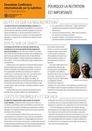 Les niveaux de nutrition ne sont pas seulement une conséquence du processus global de développement socio-économique, ils sont aussi une condition essentielle de la santé, de la productivité et du bien-être en général. Les personnes qui souffrent de malnutrition ont des défenses immunitaires affaiblies, tombent malades plus facilement et plus...