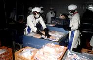 La prise du jour est acheminée vers un établissement de transformation de poisson, où les poissons sont découpés en filets, congelés et certifiés aux fins d’exportation.