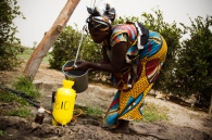 Thiaye, Senegal – A farmer preparing an organic pesticide for the spraying of crops.