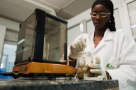 Dakar, Senegal - A sample of pureed okra being prepared for analysis of pesticides at the Ceres Locustox Laboratory. EP/INT/606/GEF: Reducing Dependence on POPs and other Agro-Chemicals in the Senegal and Niger river basins through Integrated Production, Pest and Pollution Management.