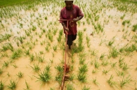 Senegal – FAO IPPM regional coordinator Hama Garba speaks with farmers and Integrated Production and Pest Management (IPPM) facilitators as they monitor a field school near the village of Loboudou Doue, Senegal on Thursday May 20, 2010.