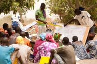 Thiaye, Senegal - Farmers attending a weekly IPPM training session. The session offers an occasion to learn about improved farming techniques and to share observations on the growth of plants in the school field.