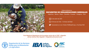 Santiago de Chile, 14 de abril de 2021 – Para identificar las actividades de las organizaciones gremiales algodoneras en los países socios en el contexto de pandemia y post pandemia con miras a la reactivación económica y social, el Foro Regional Algodonero de los Países Socios de la Cooperación Sur-Sur Trilateral +Algodón promueve, el día 22 de abril, la Videoconferencia: Encuentro de Organizaciones Gremiales. El encuentro virtual también busca fortalecer el intercambio entre los gremios y sus acciones en los diferentes países. La videoconferencia tendrá transmisión en vivo por las redes sociales: Twitter FAOBrasilCoop y canal de FAO en YouTube, a las 15 horas de Chile (16h de Brasil).