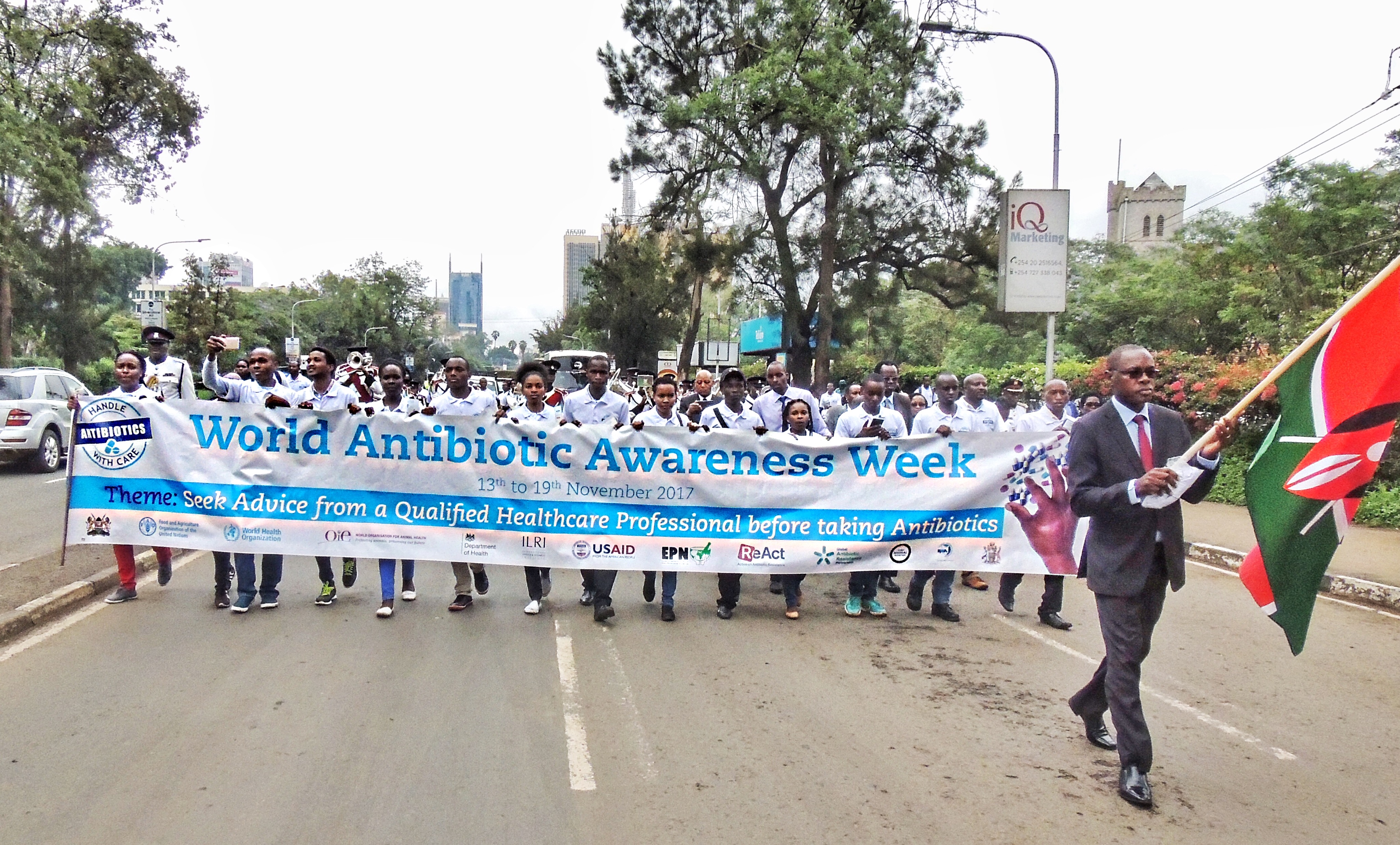 Animal and human health experts march together through the streets of Nairobi during World Antibiotic Awareness Week to celebrate the launch of a new multi-sector plan to tackle AMR.