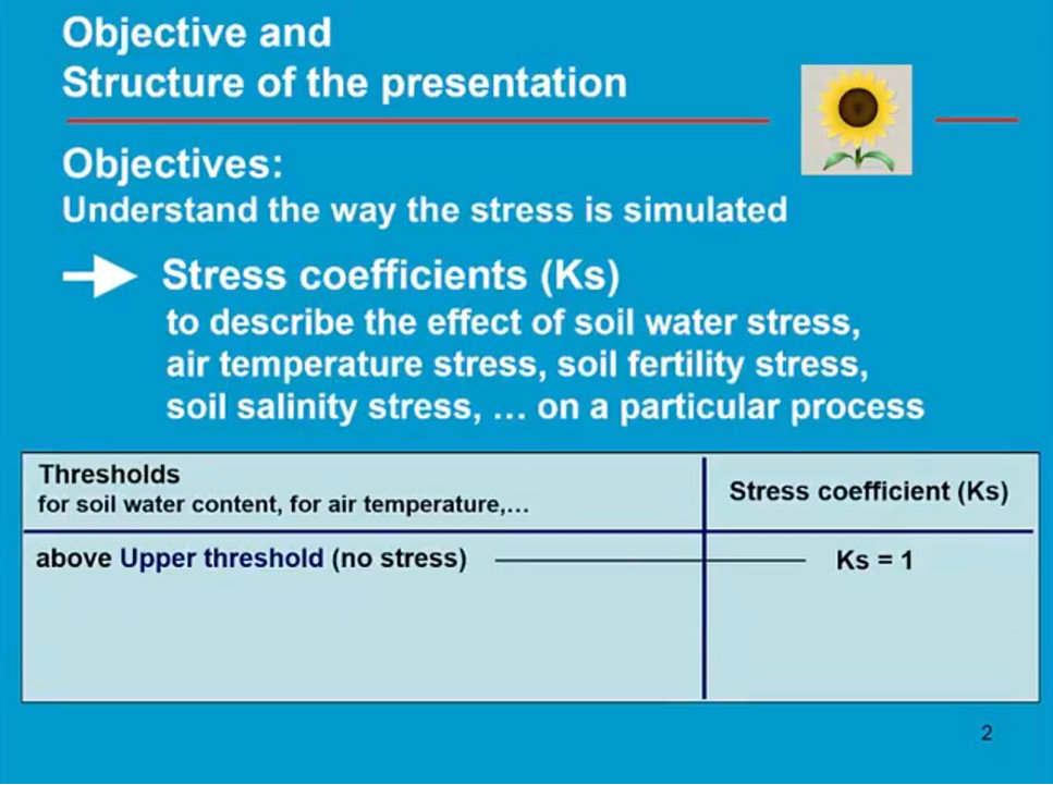 Yield response to water part 2 - AquaCrop - Training module Nr. 4.6 (unit 4. Crop)