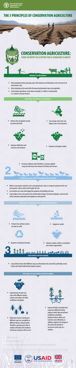 تعتمد الزراعة المحافظة على الموارد على ثلاثة مبادئ رئيسية تم تكييفها لتعكس الظروف والاحتياجات المحلية: