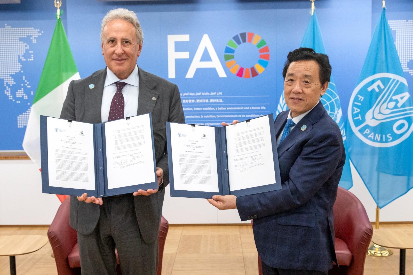 罗马 — 联合国粮食及农业组织(粮农组织)总干事屈冬玉今天在组织总部与那不勒斯费德里科二世大学校长马泰奥·洛里托教授共同签署意向书,承诺交流创新和技术专长,合作加强韧性农业粮食体系。