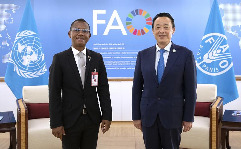 Roma - El Sr. QU Dongyu, Director General de la Organización de las Naciones Unidas para la Alimentación y la Agricultura (FAO), se reunió hoy en Roma con el Sr. Tsimanaoraty Paubert Mahatante, Ministro de Pesca y Economía Azul de la República de Madagascar, paralelamente al 35.º período de sesiones del Comité de Pesca de la FAO (5-9 de septiembre de 2022).