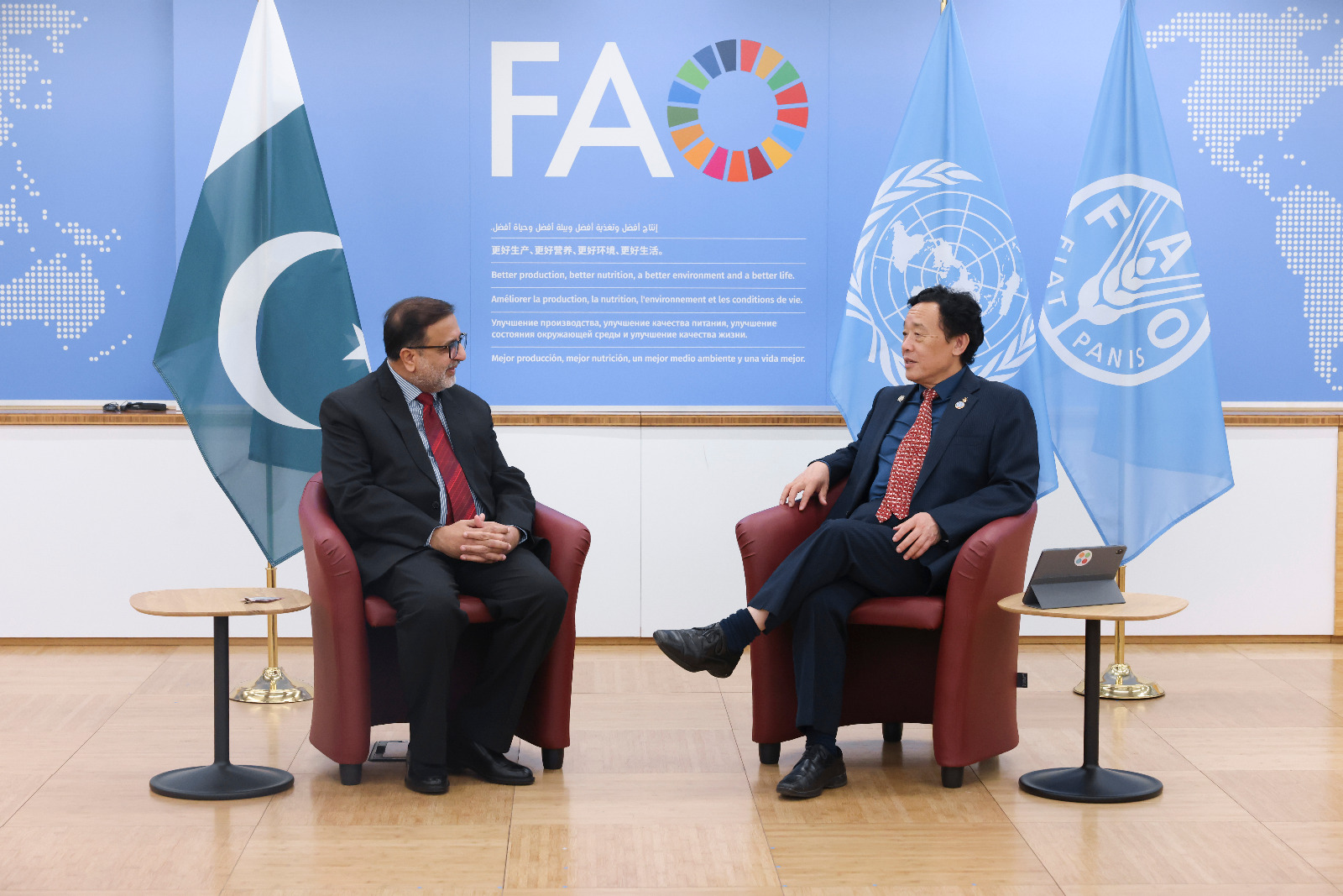 Roma. El Sr. QU Dongyu, Director General de la Organización de las Naciones Unidas para la Alimentación y la Agricultura (FAO), se reunió hoy en Roma con el Sr. Amir Mohyuddin, Secretario Adjunto de Agricultura del Pakistán, durante la celebración del Foro Mundial de la Alimentación (FMA).