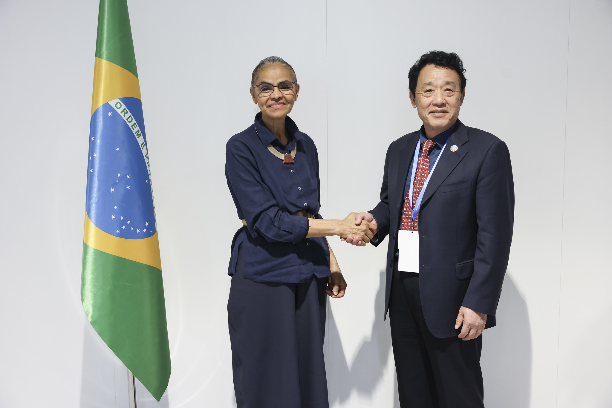Bakú (Azerbaiyán) - El Sr. QU Dongyu, Director General de la Organización de las Naciones Unidas para la Alimentación y la Agricultura (FAO), se reunió con la Excma. Sra. Marina Silva, Ministra de Medio Ambiente del Brasil, paralelamente a la celebración de la 29.ª Conferencia de las Partes (COP 29).