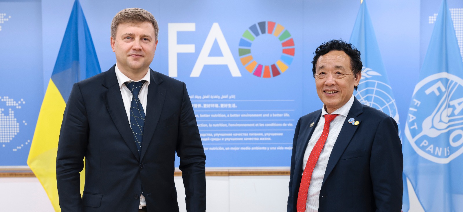 Ambos convinieron en continuar trabajando juntos con objeto de velar por la recuperación del sistema agroalimentario de Ucrania en aras de lograr los Objetivos de Desarrollo Sostenible, sin dejar a nadie atrás.