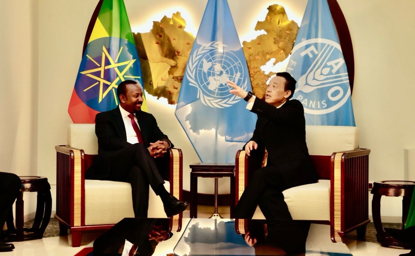 Rome – Le Directeur général de l’Organisation des Nations Unies pour l’alimentation et l’agriculture (FAO), M. Qu Dongyu, s’est entretenu aujourd’hui au siège de l’Organisation, à Rome, avec le Premier Ministre de la République fédérale démocratique d’Éthiopie, M. Abiy Ahmed Ali, à l’occasion de la cérémonie de remise de la médaille Agricola.