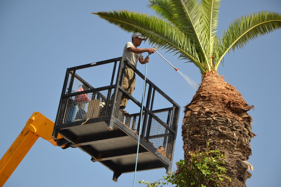 أما على مستوى المزرعة، فقد تطوّر نظام متّسق من المعارف بما فيه الكفاية لإحداث فارق. وبما أنّ سوسة النخيل الحمراء تحّب الأشجار المجروحة، لا بدّ من معالجة الجروح التي تُصاب بها الجذوع جراء تجمّع الفروع، وإغلاقها فورًا. وينبغي إخضاع الأشجار للفحص كل ستّة أسابيع على الأقل. وينبغي مراقبة تغذية النباتات ورصد ظروف الرطوبة بشكل مستمر. وفي الأردن، تقوم جمعية التمور بإنشاء فريق من المهندسين الزراعيين لفحص المزارع مرّتين شهريًا وتدريب العمّال، لا سيما في الشمال حيث تتفشى الآفة على نطاق واسع.