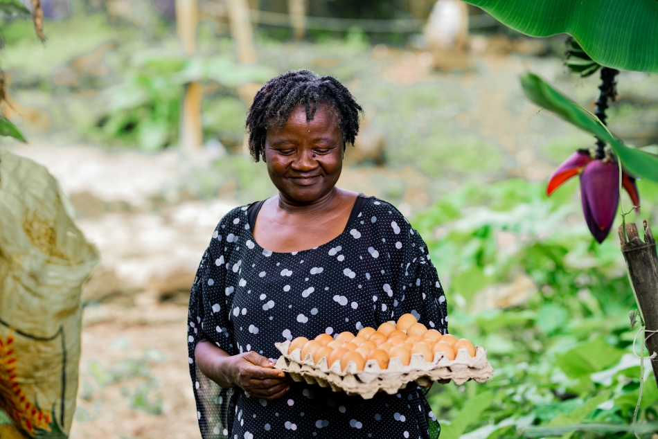 Jasinta一路小跑前往位于喀麦隆西南部Bokwango的农场,开始了她一天的工作。每天早晨起床后,她都会先去查看鸡舍,填满食槽,给鸡喂食。Jasinta有四个孩子,她是周围许多人的榜样——因为她靠养鸡卖鸡开启了幸福生活。