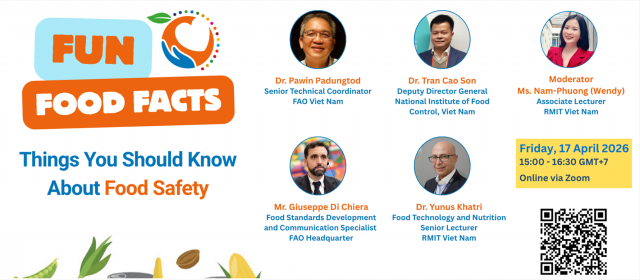 Leading up to World Food Safety Day (7 June 2026), FAO Viet Nam and RMIT University Vietnam are bringing together food experts to share with you the facts and knowledge to make safer food choices every day.