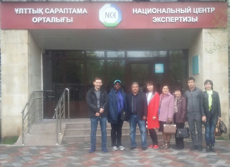 The Codex Chairperson with the General Director of the KZ-NCE Mr Kanat Balykbayev and the Deputy-Director of the KZ-NCE Almaty Branch, Mr Jumash Sandykbayev and some staff members at the KZ-NCE Almaty Branch premises