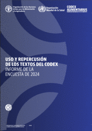 La Secretaría del Codex realiza una encuesta anual a todos los miembros del Codex para evaluar el uso y el impacto de los textos del Codex. Este informe proporciona información sobre el alcance, la pertinencia, el reconocimiento y el uso de los textos del Codex y, en última instancia, sobre su impacto. El informe destaca los obstáculos que dificultan la adopción de los textos del Codex por parte de los miembros y extrae conclusiones y lecciones aprendidas.La encuesta a los miembros del Codex de 2024 representa la tercera edición de esta iniciativa anual de recopilación de datos, que se basa en los cimientos establecidos en 2022 y 2023. El informe presenta los resultados generales del uso y el impacto de los textos del Codex, así como resultados específicos sobre los siguientes textos del Codex: Código de prácticas para minimizar y contener la resistencia a los antimicrobianos transmitida por los alimentos (CXC 61-2021); Límites máximos de residuos (LMR) y recomendaciones para la gestión de riesgos (RMR) de residuos de medicamentos veterinarios en los alimentos (CXM 2-2024); Principios de trabajo para el análisis de riesgos en materia de inocuidad de los alimentos para su aplicación por los gobiernos (CXG 62-2007); y Principios y directrices para los sistemas nacionales de control de los alimentos (CXG 82-2013).