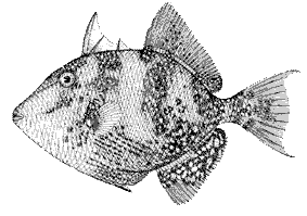 Autres noms scientifiques encore en usage: Balistes capriscus Gmelin, 1788 Balistes forcipatus Gmelin, 1788 Noms vernaculaires FAO: An - Grey triggerfish; Es - Paz ballesta; Fr - Baliste-cabri. Caractères distinctifs: Corps haut et comprimé latéralement, recouverts, ainsi que la tête, d'une cuirasse de petites écailles épaisses et jointives mais non soudées. Yeux situés près du profil dorsal; bouche petite, armée de dents incisiformes échancrées, en 1 rangée à la mâchoire inférieure, 2 à la supérieure; ouvertures branchiales en fente courte; un sillon étroit en avant de l'oeil, ventral par rapport aux narines. Deux nageoires dorsales, la première à 3 épines rigides (la première la plus forte pouvant être bloquée en érection par la deuxième, un mouvement de la troisième déverrouillant l'ensemble); deuxième dorsale et anale opposées, à 24-27 rayons mous; pectorales courtes; pelviennes rudimentaires fusionnées en un appendice épineux, mobile, suivi d'une dizaine d'épines réunies par une membrane; caudale émarginée, les rayons marginaux prolongés chez l'adulte. Revêtement écailleux régulier et complet, 52 à 62 plaques en série longitudinale; quelques plaques plus grandes en arrière de l'ouverture branchiale au-dessus de pectorales. Coloration: grisâtre à reflets verdâtres ou jaunâtres plus ou mains violacés sur le dos; souvent taches ou bandes transversales irrégulières 3 sur les flancs; parfois taches bleutées au-dessus de l'oeil, menton plus clair; nageoires marquées de taches bleues et jaunes plus ou moins alignées. Différences avec les espèces les plus similaires de la zone: Stephanolepis diaspros (Monacanthidae) : 1 épine à la première dorsale; corps plus comprimé latéralement; revêtement chagriné ou d'apparence veloutée où les écailles ne se distinguent pas à l'oeil nu. Aucune autre espèce de la zone ne possède à la fois le revêtement d'écailles épaisses et la première dorsale à 3 épines, typiques de ce baliste. Taille: Maximum: 45 cm au moins; commune de 15 à 35 cm. Habitat et biologie: Vit surtout au-dessus des fonds rocheux, en eaux relativement peu profondes, de 10 à 100 m, souvent sous des épaves flottantes. Aurait un comportement solitaire. Reproduction en été; les oeufs sont pondus dans une cavité creusée par la femelle, et sont gardés par le mâle. Se nourrit d'invertébrés benthiques, essentiellement mollusques et crustacés. Pêche et utilisation: Capturé lors de pêches semi-industrielle ou artisanale au moyen de sennes de plage et coulissantes, chaluts, filets maillants de fond et pélagiques ou lignes à main. Apparaît occasionnellement ou rarement sur les marchés où il est commercialisé frais ou réfrigéré. |