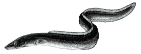 Autres noms scientifiques encore en usage: Aucun. Noms vernaculaires: FAO : An - European conger; Es - Congrio común; Fr - Congre d'Europe. Caractères distinctifs: Corps allongé, subcylindrique, comprimé en arrière de l'anus, situé en avant de la mi-longueur. Profil de la tête déprimé au-dessus de l'oeil; oeil petit, espace interorbitaire large et aplati; narine antérieure tubiforme, à l'extrémité du museau, narine postérieure en pore ovale, située plus près de l'oeil que de la narine antérieure. Museau légèrement proéminent; commissure buccale au niveau de la moitié postérieure de l'oeil; lèvre supérieure avec un repli très large. Aux deux mâchoires une rangée externe de dents incisiformes très comprimées et très serrées, formant un bord tranchant, et une rangée interne de petites dents coniques et pointues; dents coniques plus grandes sur le prémaxillaire et le vomer. Fentes branchiales sublatérales, en croissant. Nageoires dorsale et anale à rayons segmentés, confluentes avec la caudale; origine de la dorsale au niveau de l'extrémité des pectorales. Ligne latérale à 44-47 pores préanaux, 6 prépectoraux, un supratemporal. Vertèbres totales: 148-153, abdominales: 53-57. Coloration: gris plus ou moins sombre, ventre plus clair; nageoires impaires bordées de noir; pores de la ligne latérale marqués de blanc. Taille: Maximum: 3 m environ; commune de 60 à 150 cm. Habitat et biologie: Benthique sur les fonds rocheux et sableux du plateau continental, de 0 à 100 m. Maturité sexuelle atteinte à 5-15 ans; mâles matures à 50-75 cm, femelles à 2 m environ; ponte en été (3 à 8 millions d'oeufs par femelle); longue vie larvaire, métamorphose à 14-16 cm, croissance très rapide des jeunes. Carnivore, se nourrit de poissons, crustacés et céphalopodes. Pêche et utilisation: Pêche semi-industrielle (Espagne), artisanale et sportive. Engins: sennes de plage, chaluts, filets maillants et palangres de fond, pièges et lignes à main. Régulièrement présent sur les marchés de Méditerranée, mais rare en mer Noire, est commercialisé frais, parfois rejeté (Grèce). |