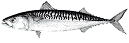 Autres noms scientifiques encore en usage: Aucun. Noms vernaculaires FAO: An - Atlantic mackerel; Es - Caballa del Atlántico; Fr - Maquereau commun. Caractères distinctifs: Corps allongé et arrondi, museau pointu, pédoncule caudal mince. Bords antérieur et postérieur de l'oeil recouverts par une paupiére adipeuse. Dents petites et coniques aux deux mâchoires et sur la voûte buccale; branchiospines plus courtes que les filaments branchiaux. Deux nageoires dorsales largement séparées (intervalle entre le sillon de la première et l'origine de la seconde nettement plus grand (1 fois 1/2) que le sillon de la première), la première avec 11 à 13 épines; 5 pinnules dorsales et 5 pinnules anales; un seul petit appendice (processus interpelvien) entre les nageoires pelviennes. Ecailles en arrière de la tête et autour des pectorales plus grandes et plus visibles que celles qui couvrent le reste du corps, mais pas de corselet bien développé. Deux petites carènes de chaque côté du pédoncule caudal, à la base de la caudale, mais pas de carène médiane entre elles. Vessie natatoire absente. Coloration: dos bleu-vert brillant, avec une série de lignes sombres en travers du dos; flancs métalliques; partie inférieure des flancs et ventre blancs sans aucune tache. Taille: Maximum longueur à la fourche 50 cm (30 cm en mer Noire); commune de 18 à 30 cm. Habitat et biologie: Epipélagique ou mésodémersal jusqu'à 250 m; vit en bancs groupant des individus de même taille, dans les eaux plus profondes en hiver et plus près de côtes au printemps. Reproduction en hiver et au début du printemps dans les eaux peu profondes, au-dessus du plateau continental. Maturité atteinte à 2-3 ans (environ 30 cm). Se nourrit abondamment d'invertébrés pélagiques, surtout de crustacés, et aussi de jeunes poissons, harengs, sardines et sprats. Pêche et utilisation: Pêche semi-industrielle (Espagne, mer Tyrrhénienne, Sicile, Adriatique, Maroc, Chypre et Turquie), artisanale et sportive. Enginssennes de plage et coulissantes, filets lamparos, filets maillants de fond et pélagiques, chaluts de fond et pélagiques, lignes à main et lignes de traîne, palangres de fond et dérivantes, barrages. Régulièrement présent sur les marchés de Méditerranée occidentale et centrale, en Grèce et en Turquie, occasionnellement ou rarement ailleurs, est commercialisé frais, salé, salé-séché, fumé, mariné ou en conserves; est également utilisé comme appât. |