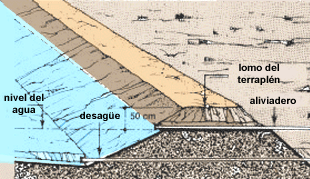 del agua debe quedar a unos 50 cm por debajo del lomo del terraplén.