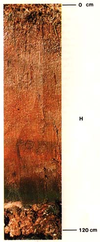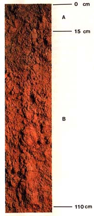 hard concretions. The B-horizon is a reddish sandy loam relatively
