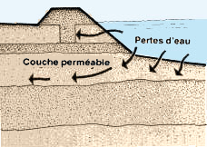 Note. L'eau s'infiltre dans le sol soit horizontalement, soit verticalement, mais seules vous concernent les fuites verticales qui sont surtout celles qui se produisent dans les étangs. |
