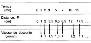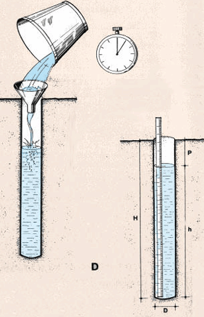 Note. On peut calculer rapidement les valeurs de h en faisant la différence entre la profondeur totale du trou (H) et les valeurs successives de P. Faites bien attention d'exprimer toutes les mesures en mètres et en secondes pour obtenir K en m/s.