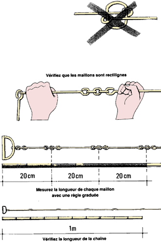 Exemple Si chaque maillon a 0,20 m de long, il doit y avoir cinq maillons par mètre de chaîne. |