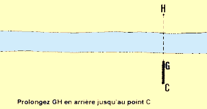 Exemple Mesure de la distance GH sur une droite tracée de part et d'autre d'un cours d'eau: