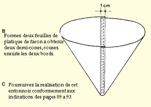 (e) Fixez deux paires de boucles (ficelle, cordelette) autour de l'anneau pour pouvoir suspendre l'entonnoir verticalernent.