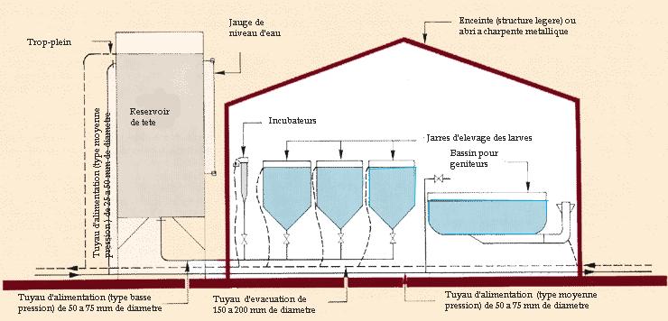 4. L'organisation de l'alimentation en eau de l'écloserie présente une importance particulière pour son bon fonctionnement. Certains des aspects à prendre en considération sont les suivants: .