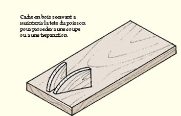 Note: La plupart des glandes pituitaires récoltées commercialement ont été prélevées sur des poissons de taille importante, par exemple des carpes communes et des saumons. Elles peuvent aussi servir à la propagation d'autres espèces. 10. La glande pituitaire peut être prélevée sur un poisson récemment tué de deux façons: en coupant et ouvrant la tête, ou en prélevant la glande pituitaire au moyen d'une foreuse. L'utilisation d'un cadre en bois facilitera les opérations effectuées sur la tête du poisson pour la couper ou y percer un trou.