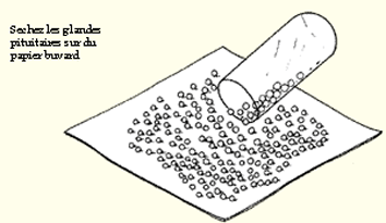 (d) Séchez les hypophyses durcies sur du papier buvard.